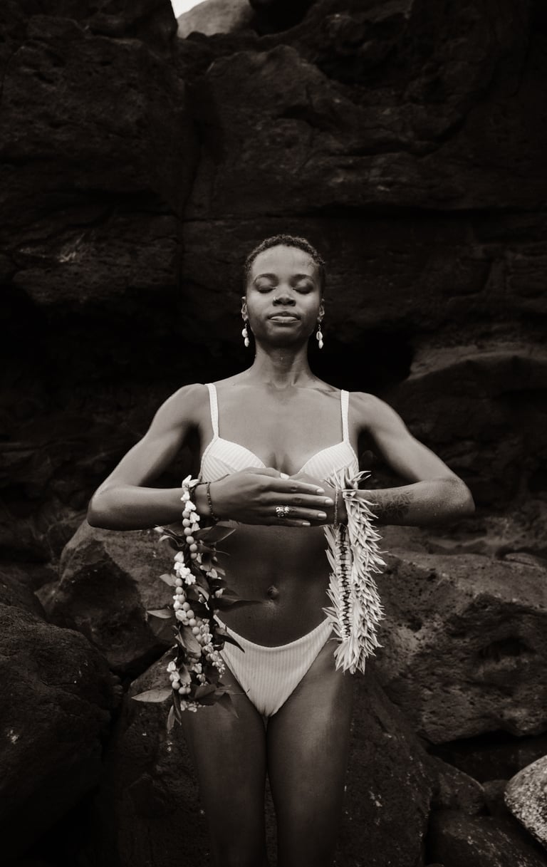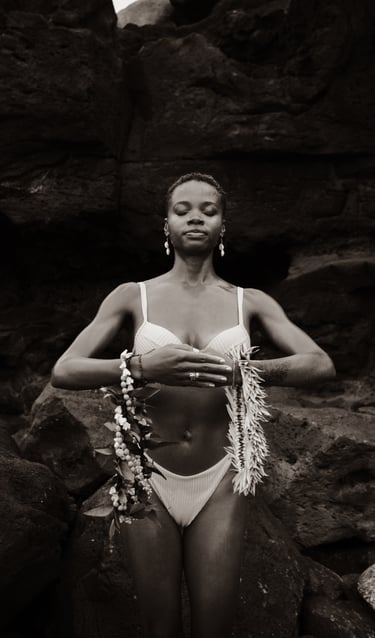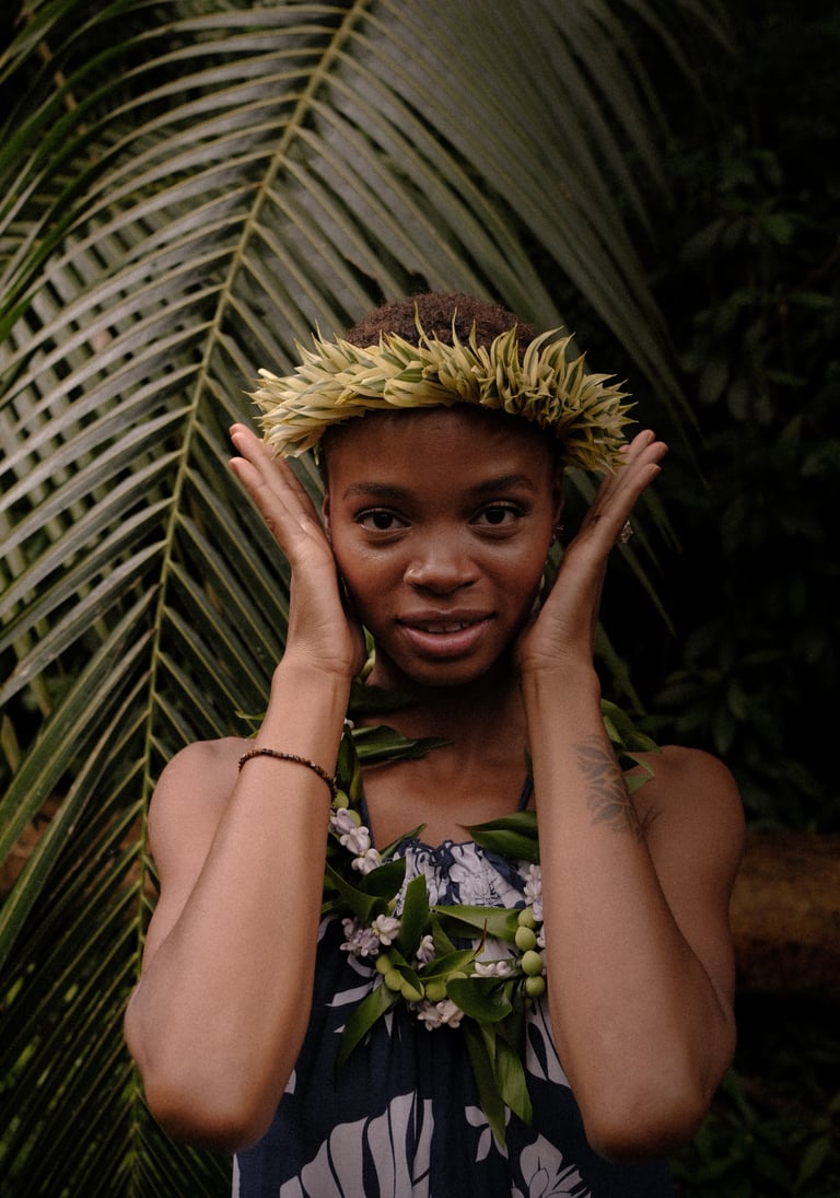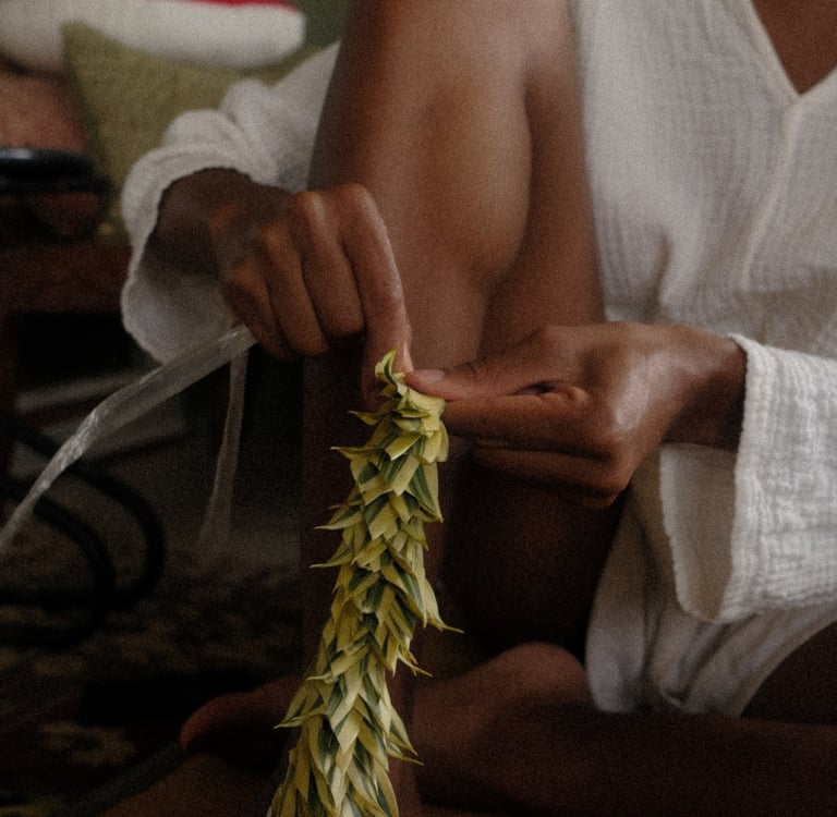 It felt very rooted in tradition to craft our own lei for this shoot. Giving Lei is a very Hawaiian thing for celebration or loved ones coming and going from the islands.